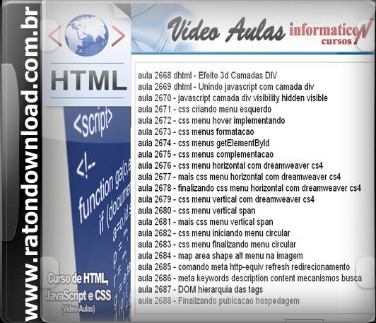 Curso Webdesigner, criação de Sites com HTML, DHTML, javascript e CSS + Dreamweaver cs4. São 147 videoaulas, 2 dvd’s totalmente em português.Neri Neitzke
