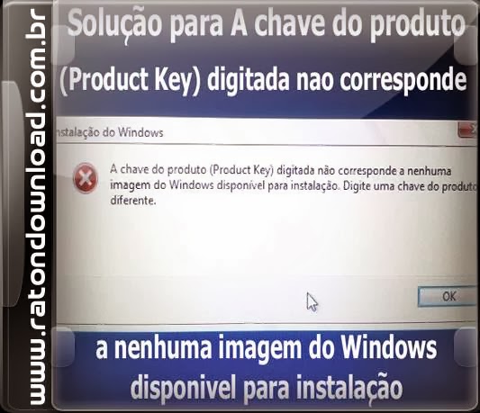 Solução para A chave do produto (Product Key) digitada não corresponde a nenhuma imagem do Windows disponível para instalação