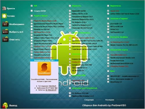 Sobre o programa : Mais de 10.000 downloads por mês na internet. A única coleção de aplicativos móveis android- AIO ( ALL - IN-ONE ), criado em um formato conveniente WPI . A primeira linha "Coleção WPI para Android'a " . Coleção seriamente retrabalhado. Agora ele está no formato de WPI e é dividido em categorias , o que é fácil de encontrar e baixar para o seu jogo do telefone ou do programa que você precisa. Apenas assinalar fora da direita, eo programa irá coletar todos em uma pasta em seu disco rígido , então você pode jogá-lo no dispositivo e instalar.
